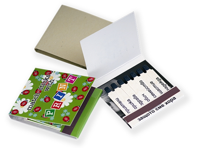 Кибритени книжки - 55/55 мм със 7 картонени печатани клечки